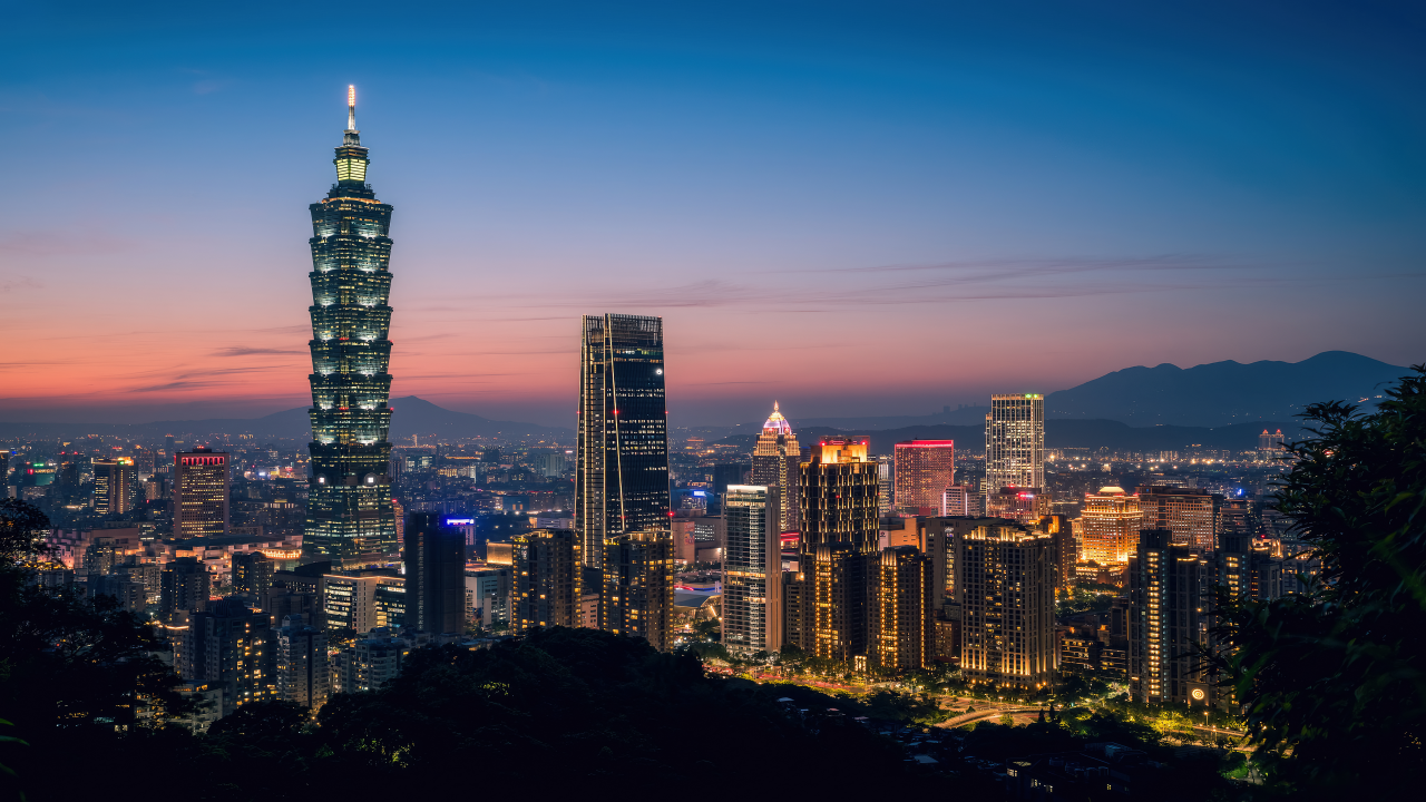 景观、城市、天际线、夜晚、灯光、水、树木、码头、远景、无人机、照片、摩天轮、夜景