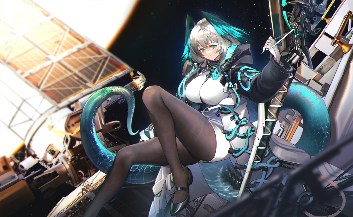 微笑、动漫、女孩、武士、龙女、龙尾巴、太空、科技