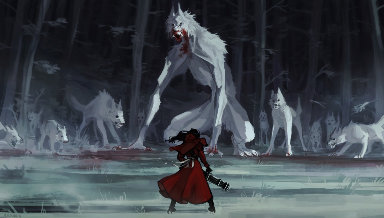 小红帽、AI艺术、奇幻、艺术、狼、生物、武器