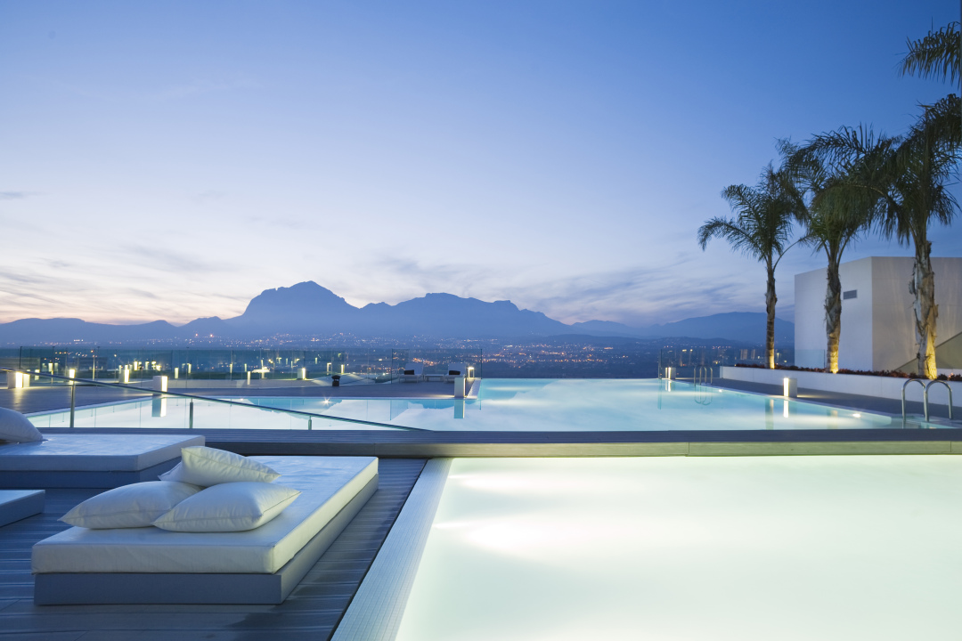 宁静的泳池与山景
