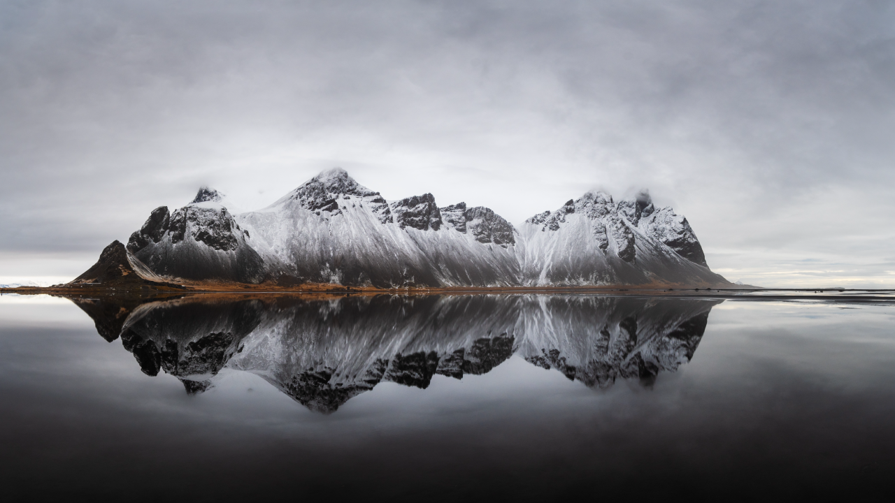 自然、风景、云雾、山水、倒影、黑沙、雪