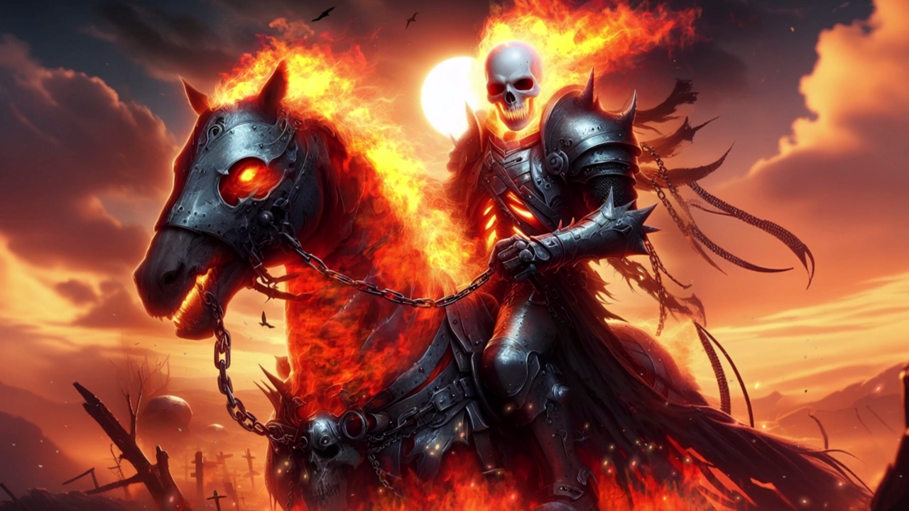 幽灵骑士与火焰摩托车的奇幻场景