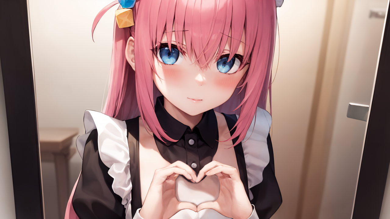 动漫女孩、动漫、女仆、艺术、女仆服装、腮红、心、心之手