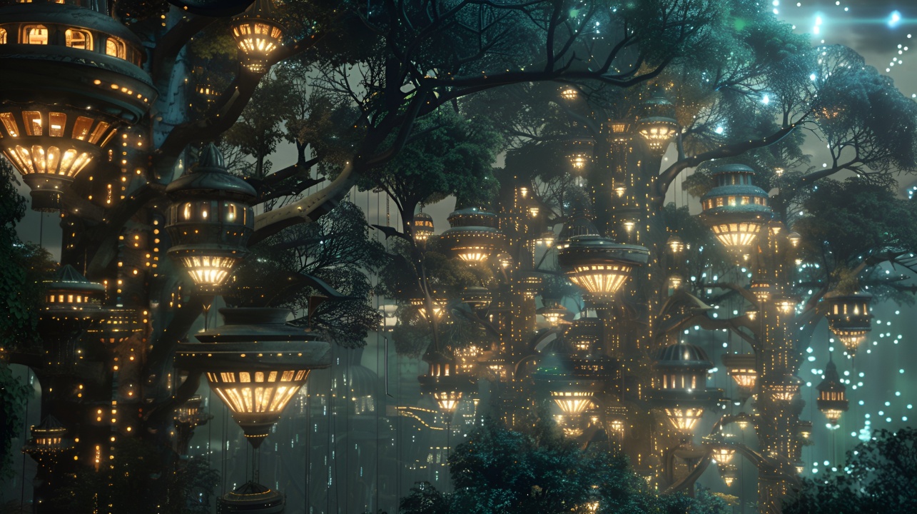城市、景观、大桥、高速公路、夜晚、灯光、道路、河流、桥梁、摩天大楼、星光、光迹