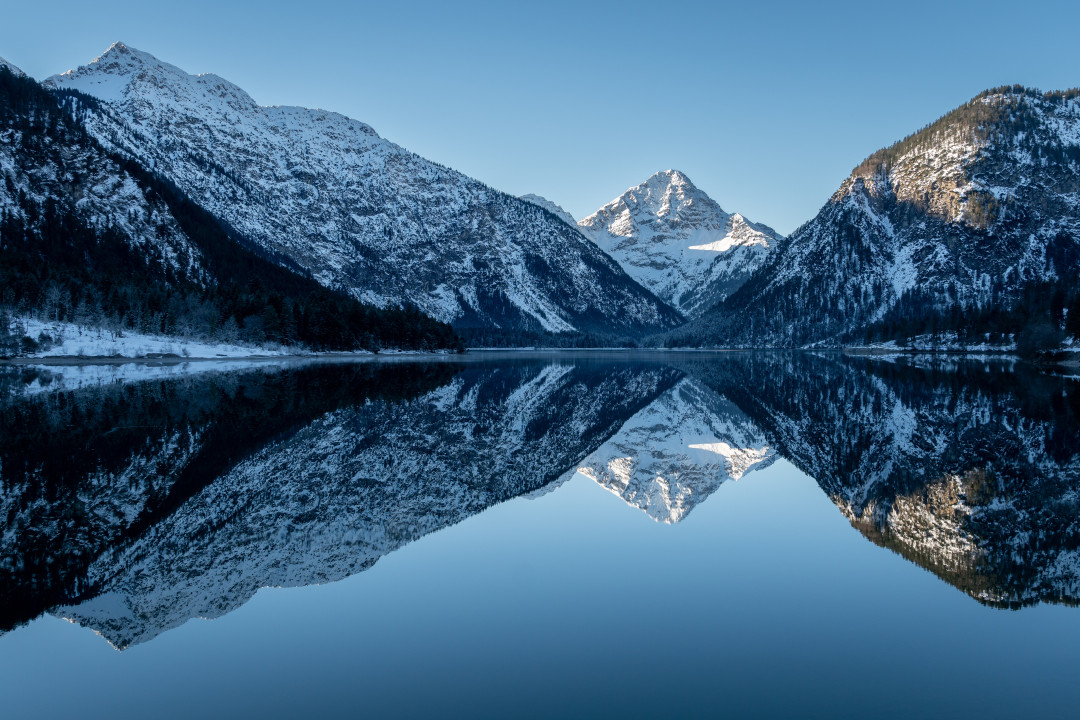 自然、景观、树木、山、雪、水、倒影、冬天、晴朗天空