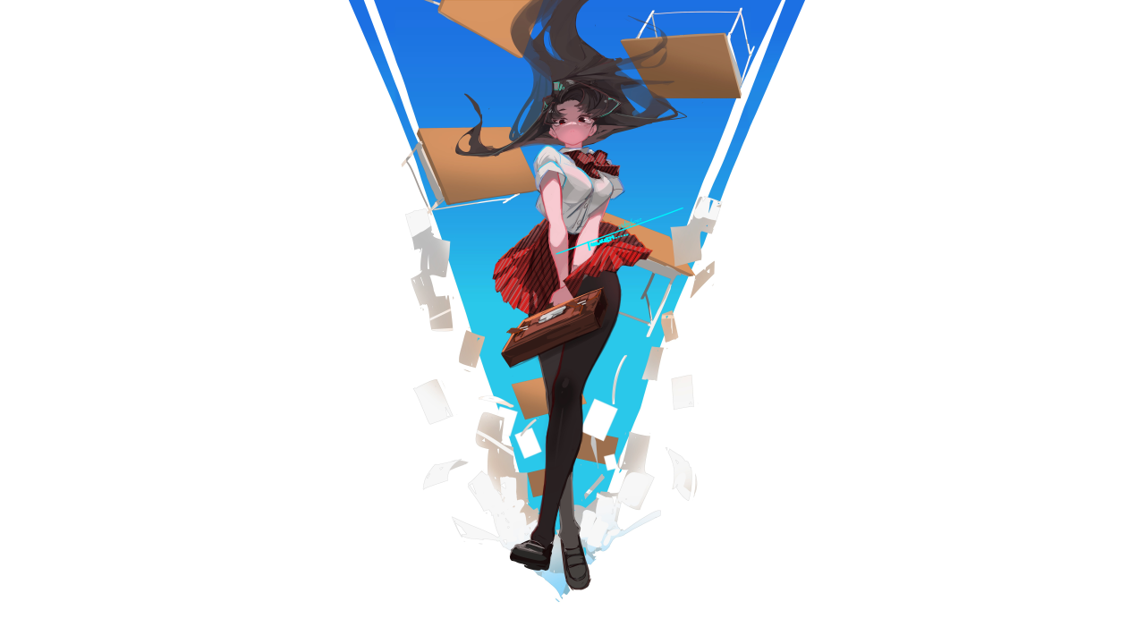 长发、坐着、蔚蓝巷、动漫女孩、连裤袜、校服、黑发、国际象棋、格子