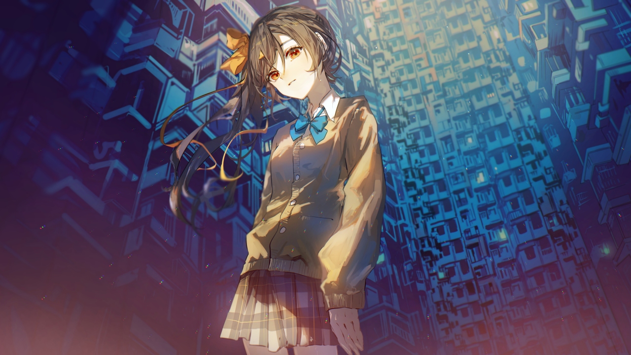 动漫女孩、虚拟、校服、头发、格子裙、动漫、裙子