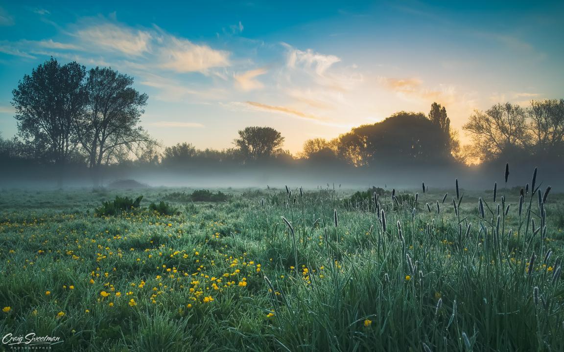 风景、田野、日出、薄雾、自然、花朵、树木、植物、阳光、户外
