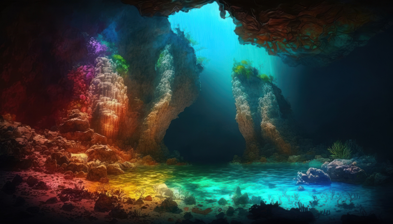 艺术、水下、数码绘画、珊瑚礁、水中、鱼、动物、阳光