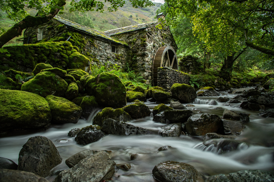 英格兰、水磨坊、大自然、石头、苔藓、溪流、树木