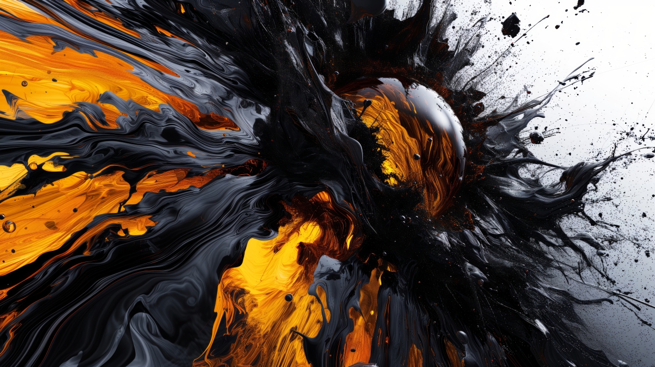 AI艺术、插画、琥珀色、黑色、飞溅油漆、抽象