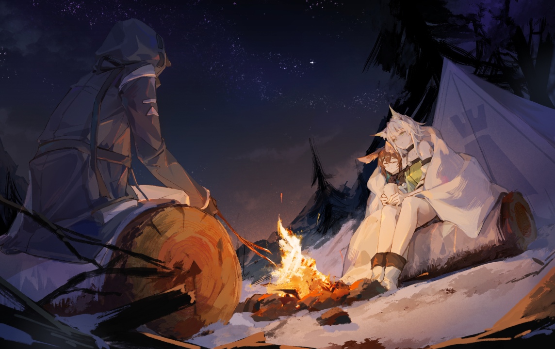 魔域边缘、动漫、女孩、明日方舟、夜晚、露营