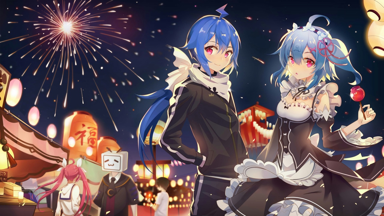 动漫女孩、原神、烟花、灯笼