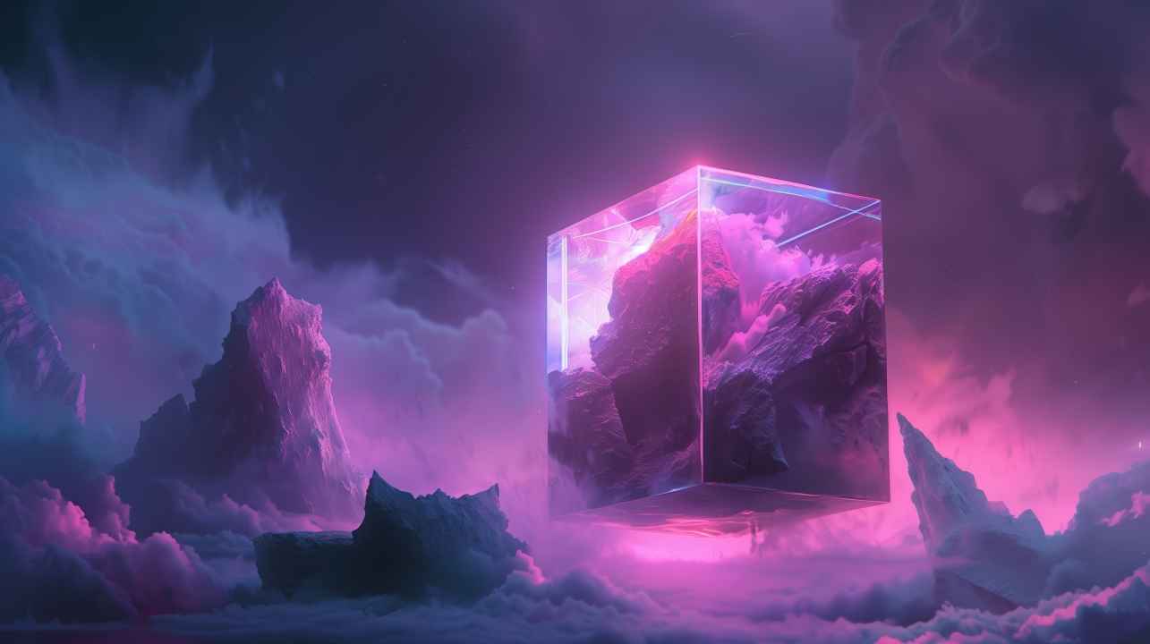 插图、立方体、霓虹灯、烟雾、岩石、电脑贴纸、4K贴纸