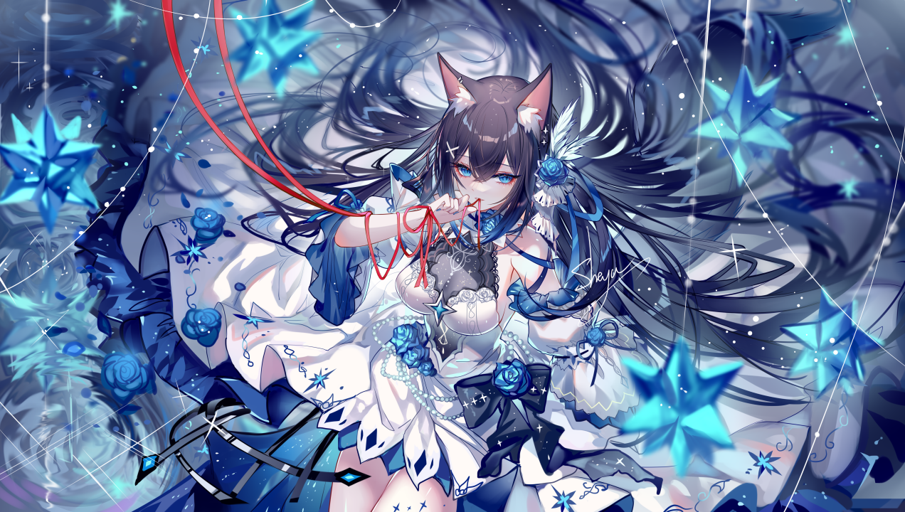 狐狸耳朵、狐耳、长发、动漫、女孩、狐狸女孩、狐女、裙子、花