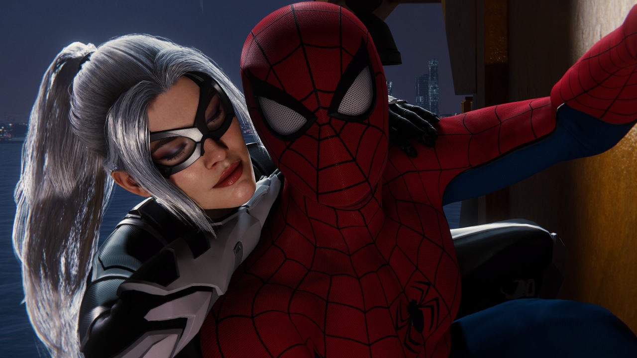 蜘蛛侠迈尔斯·莫拉莱斯、猫、城市、摩天大楼、蜘蛛侠、游戏CG