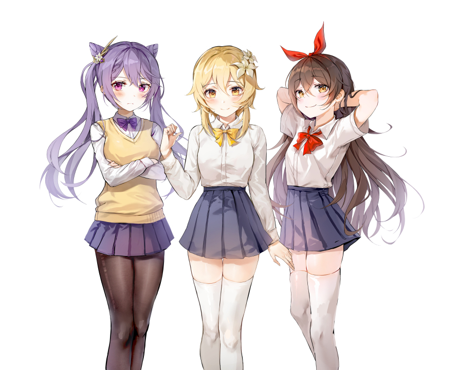 原神、露明、琥珀、科清、动漫、女孩、校服、长腿、连裤袜