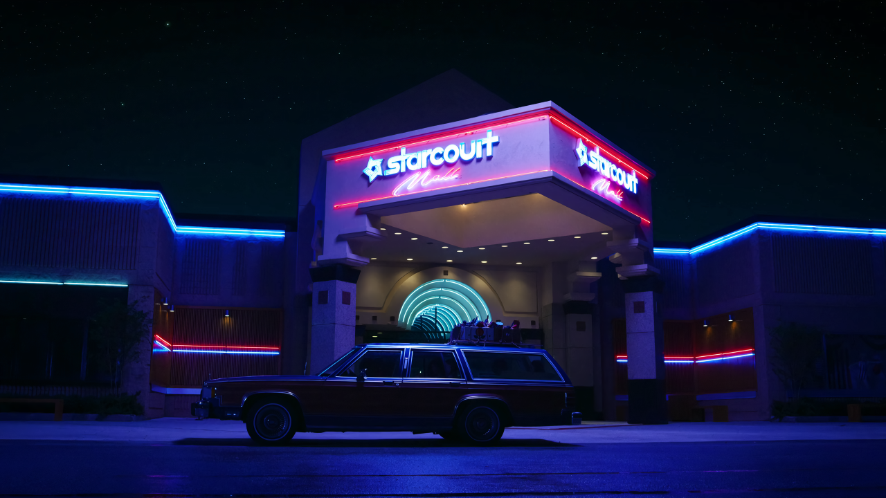 汽车、蓝色、夜晚、黑暗、红色、黑色、电视剧、霓虹灯、赛博朋克