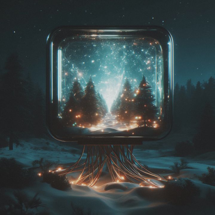 玻璃、灯、森林、夜、电视、透明度、雪、数字艺术、天空、星星、树木