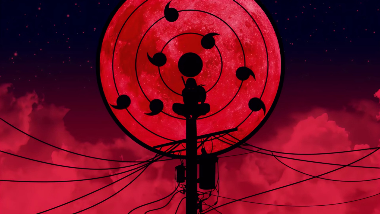 长发、红眼、痣、暗影、动漫、剑、红月、云、持剑、女人、天空、夜晚、倒影、女孩、窗户