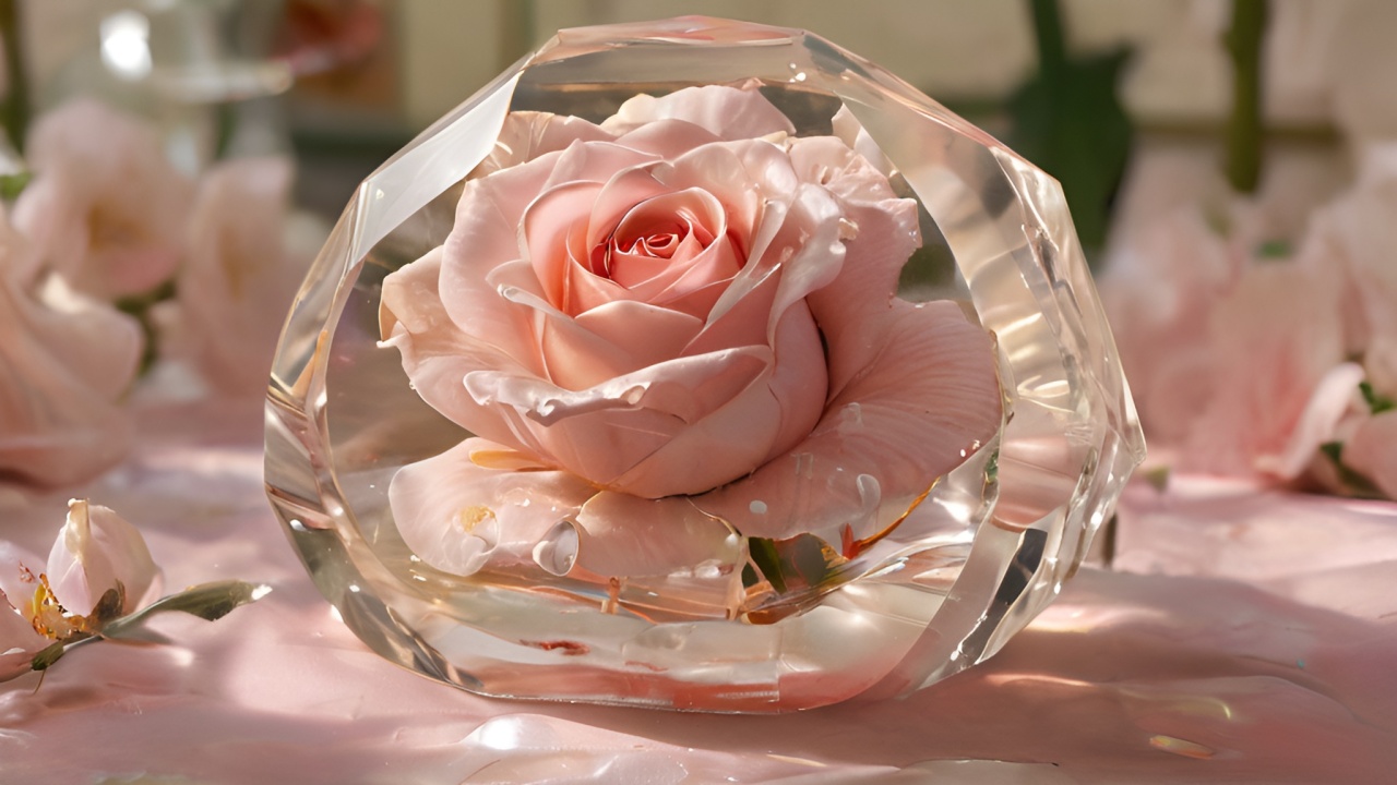 凝固的美丽:粉红玫瑰的晶莹守护