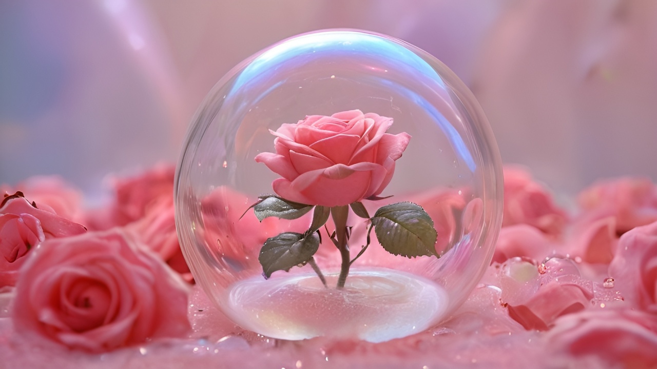 永恒之美:粉红玫瑰的晶莹守护