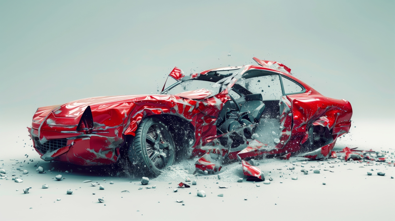抽象艺术中的红色汽车残骸