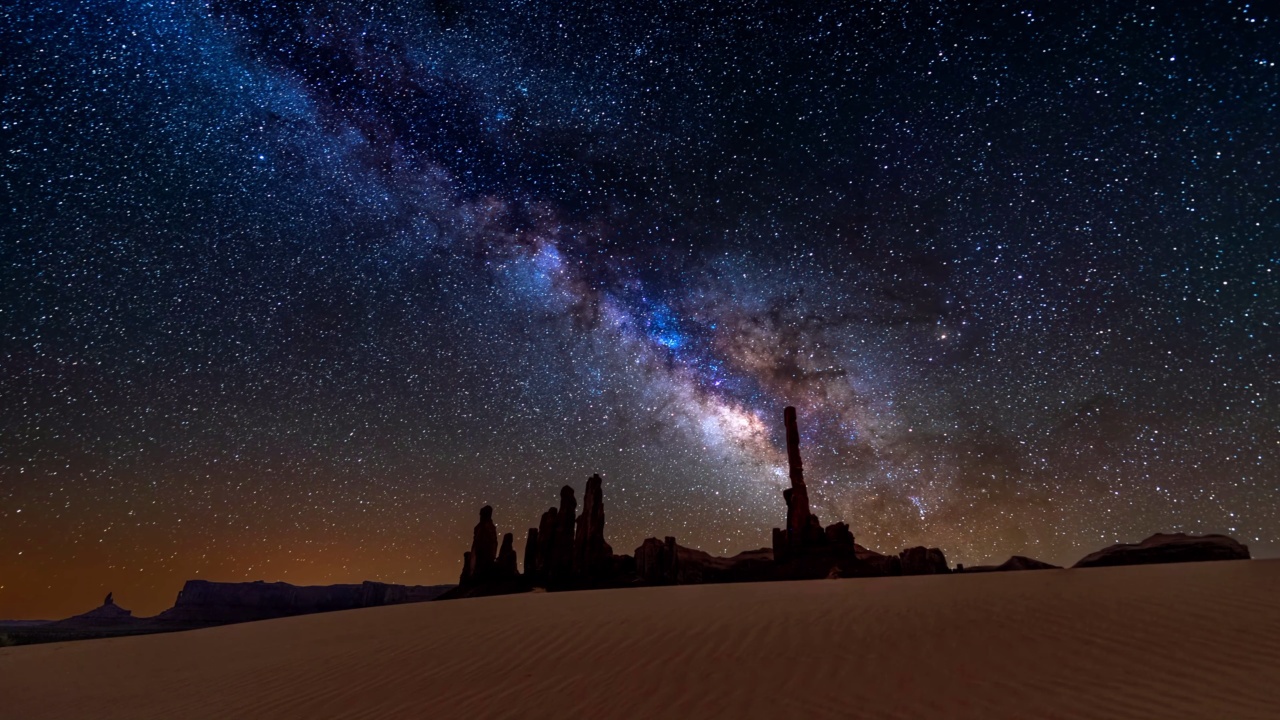 星空下的神秘沙漠:银河与纪念碑谷的梦幻邂逅