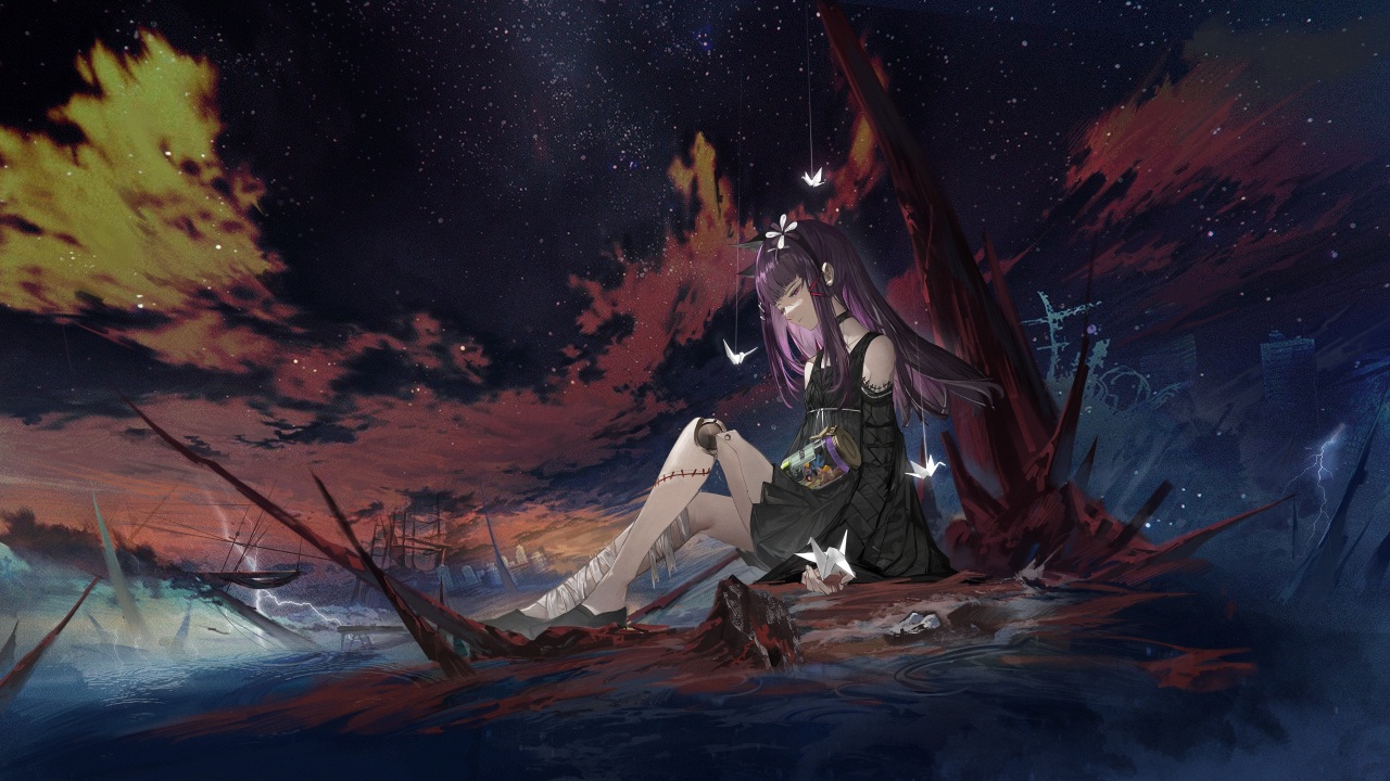 紫色头发、动漫、女孩、折纸、明星、星夜、血、黑色连衣裙