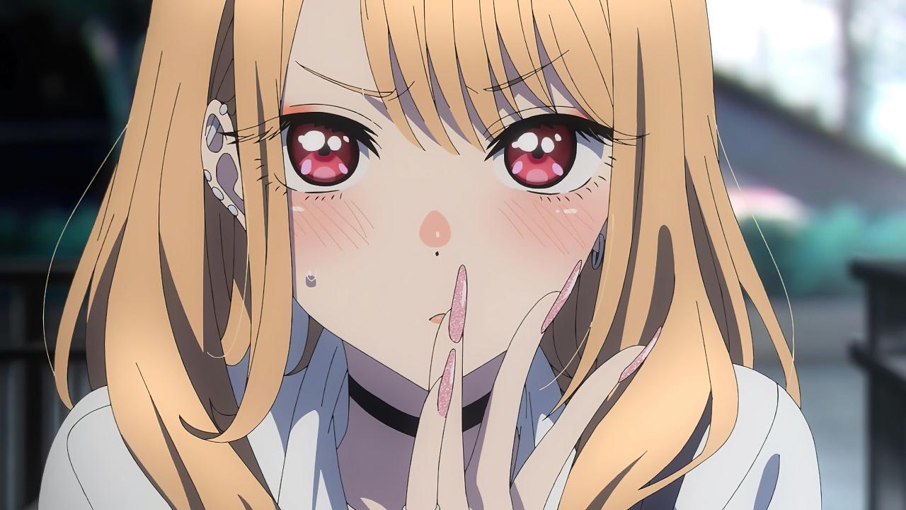 红眼睛、金发、马林、娃娃、动漫、女孩、脸红