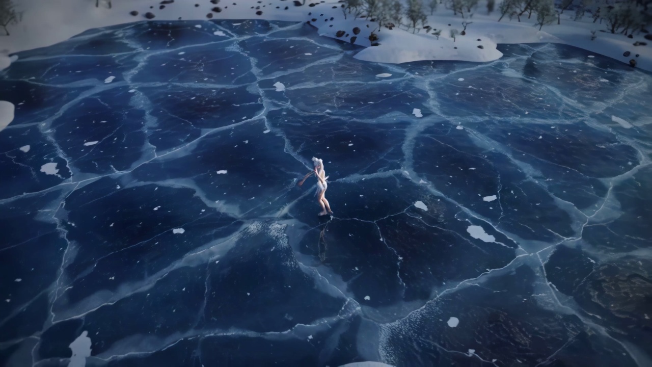 露肩、户外、女人、蓝眼睛、水、天鹅湖、天鹅、黑发、白色连裤袜、楼梯、花瓣、树叶、水滴、舞蹈、动物、蓝丝带、鸟笼子
