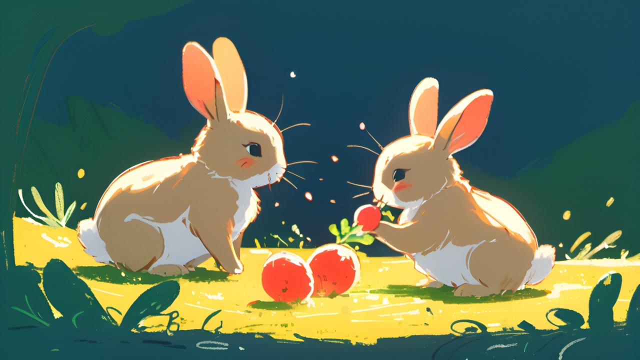 好的,以下是一些壁纸标题建议: 1. 秋日里的温馨相遇 2. 落叶纷飞中的萌宠时光 3. 阳光下的兔子之恋 4. 森林里的童话故事 5. 金色季节里的萌宠乐园 希望这些建议对您有所帮助!