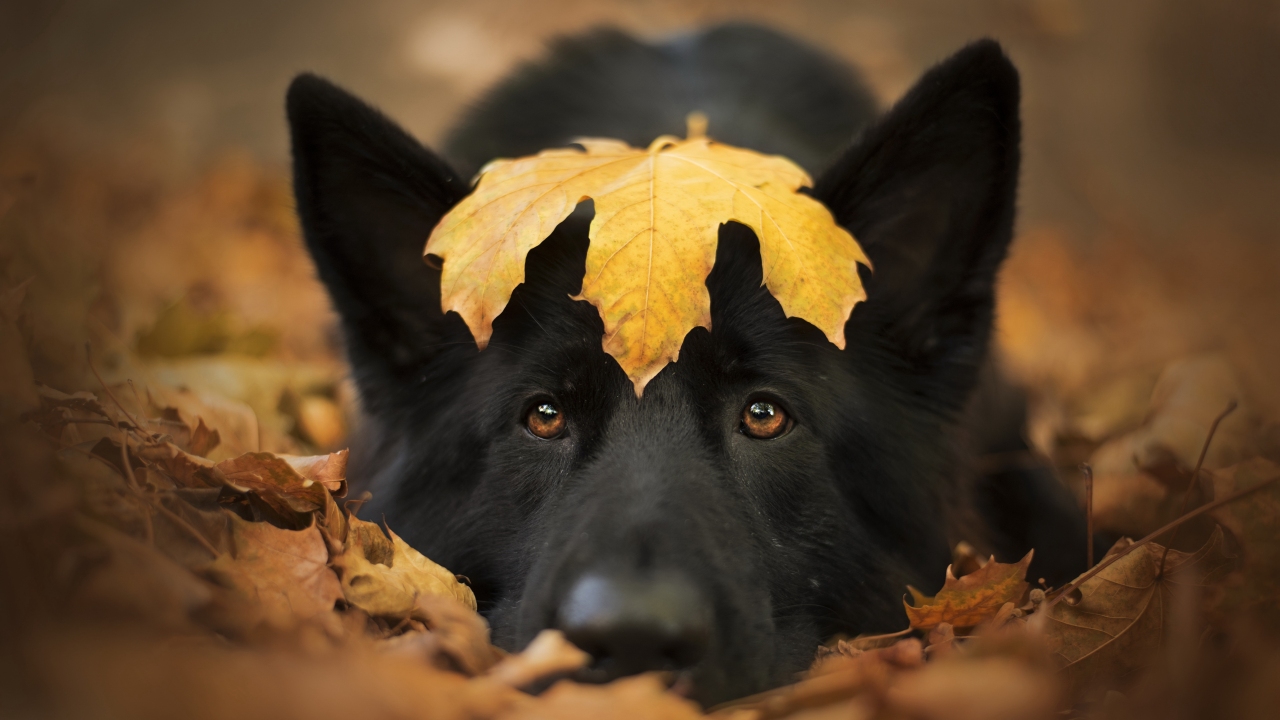 动物、狗、秋天、落叶、户外、自然、特写