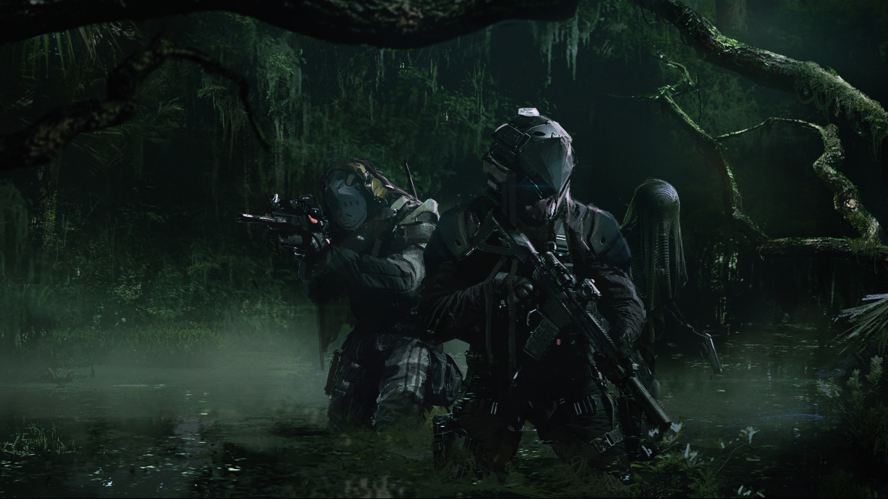 游戏CG人物、侦察、装甲、沼泽、突击步枪、灌木丛