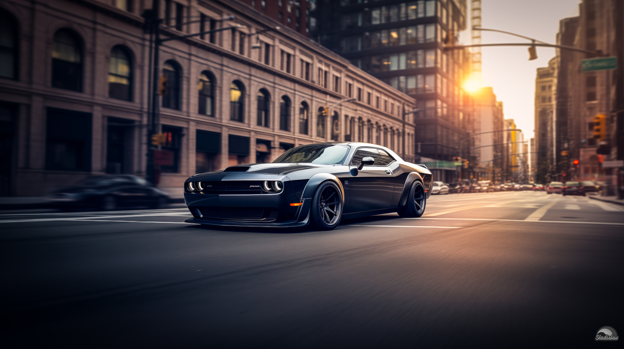 AI艺术、道奇挑战者、纽约市、汽车、车辆、黑色汽车