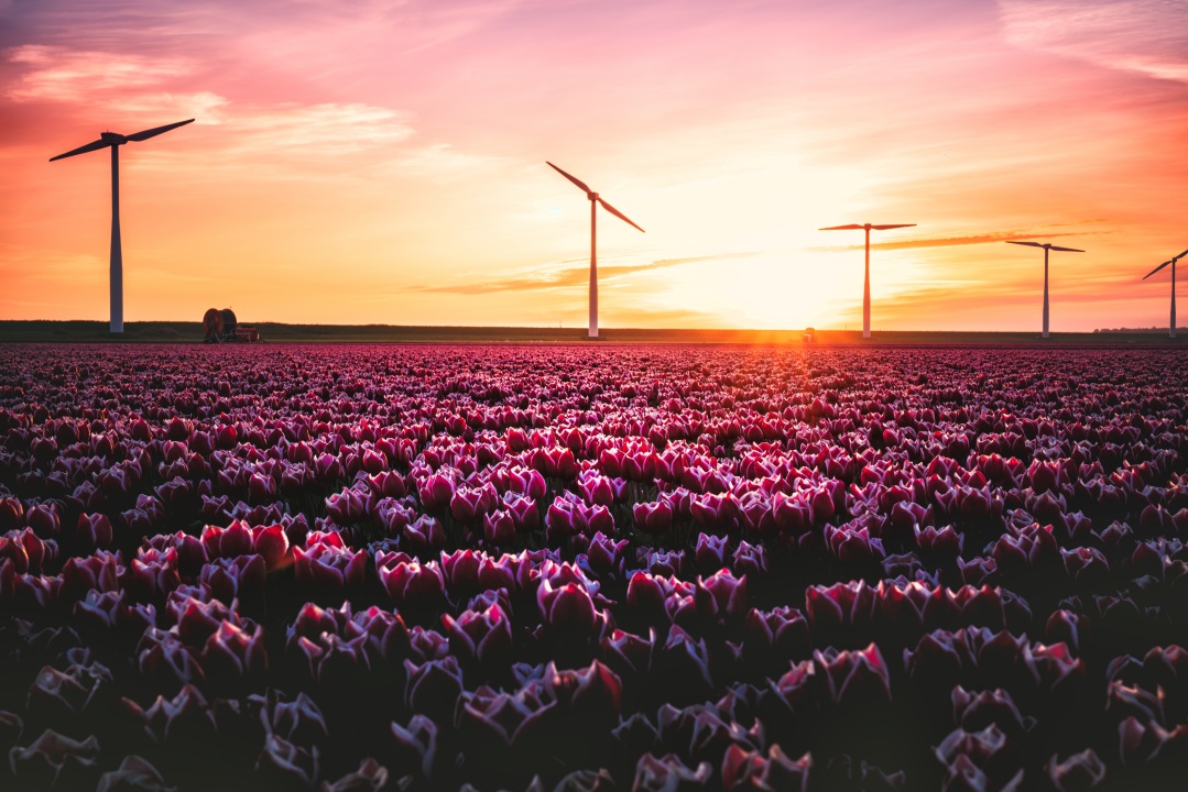 日落下的郁金香花田