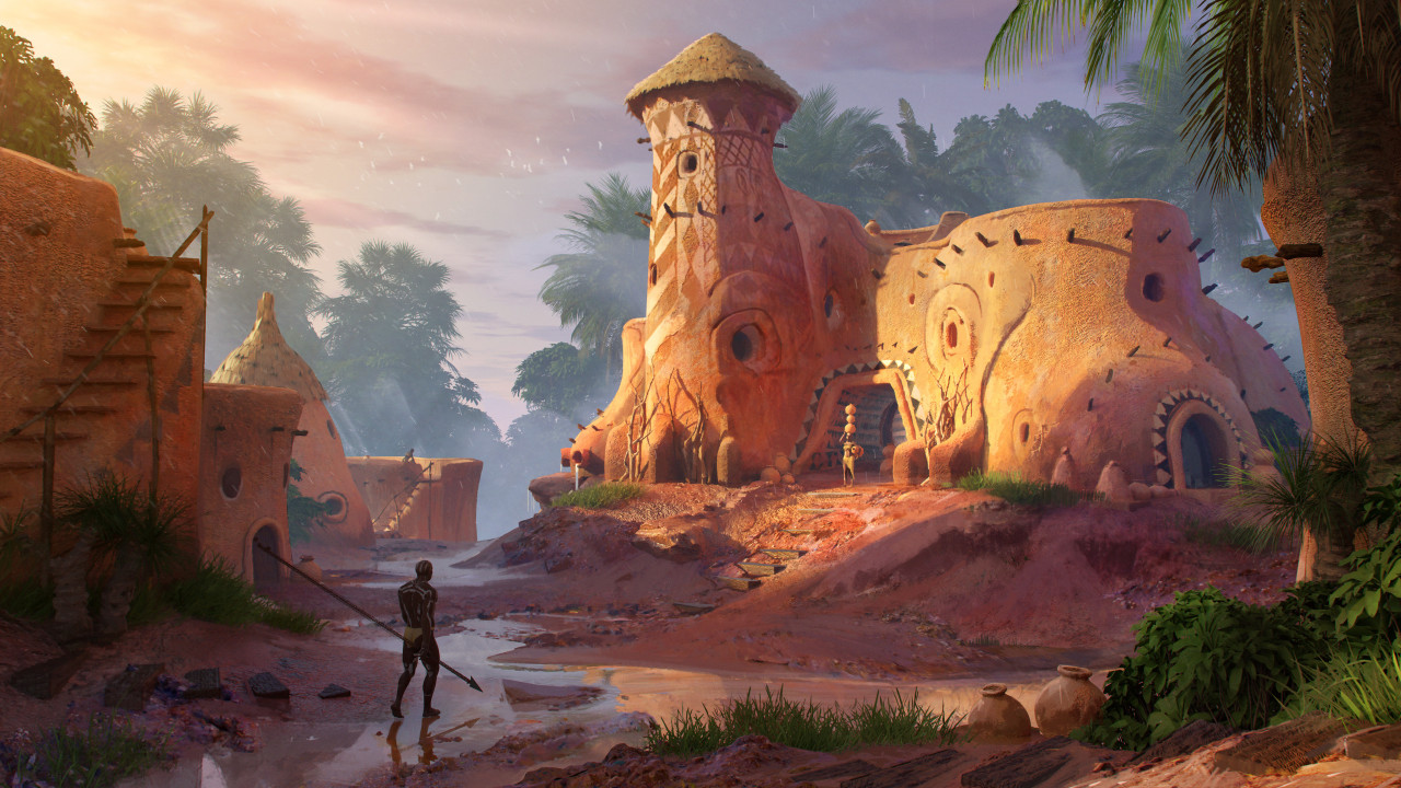 阳光下的部落建筑与自然风光
