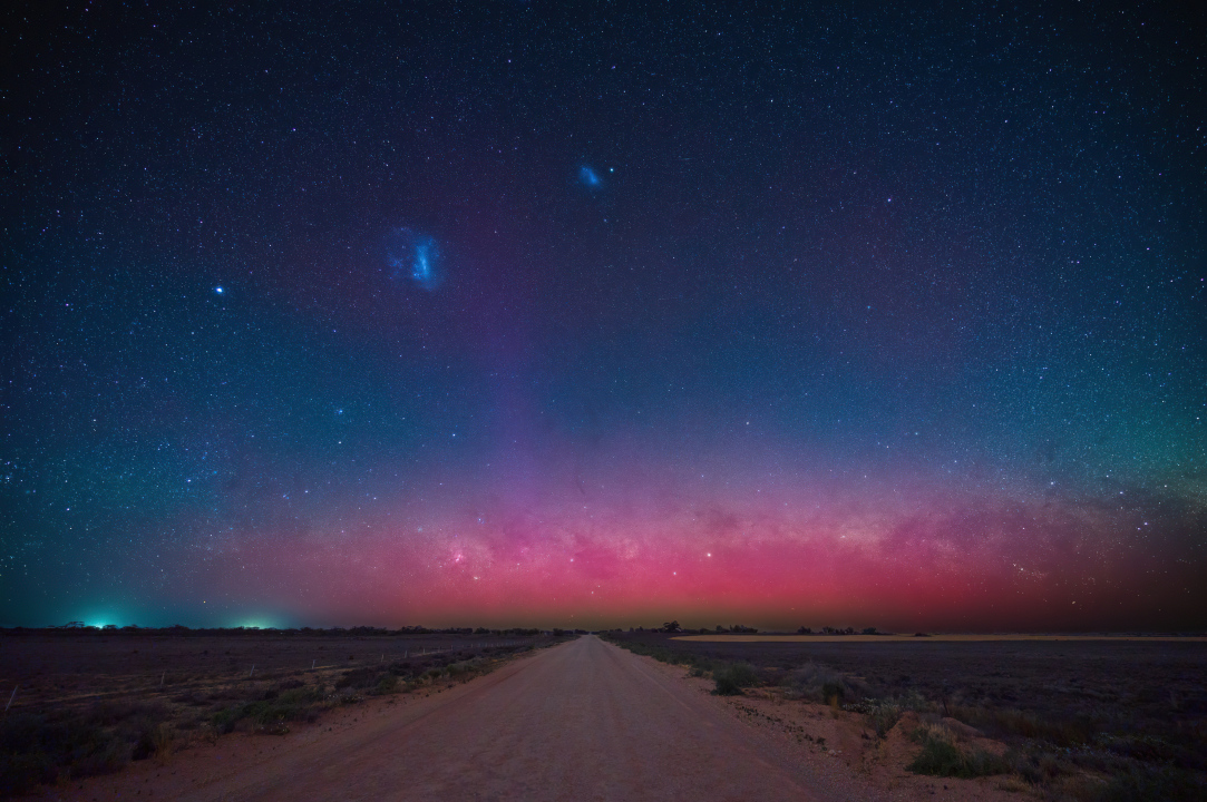 自然、风景、天空、树木、草、田野、夜、星星、银河、太空