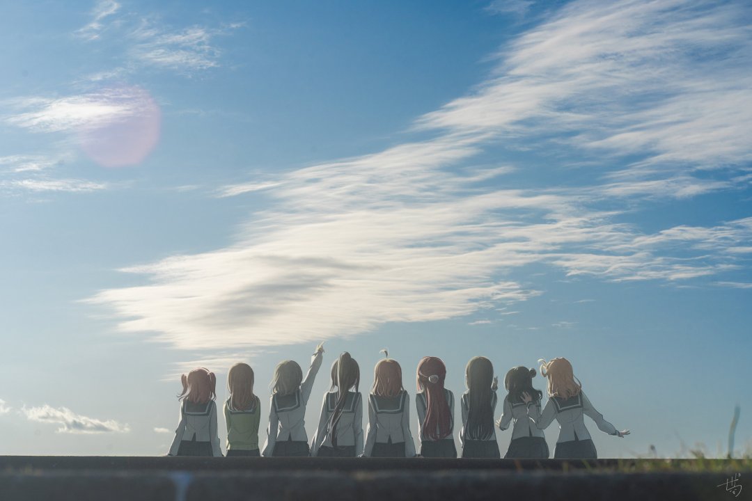 吴仁美崎、户外、赤脚、动漫、天空、校服、自然、迷你裙