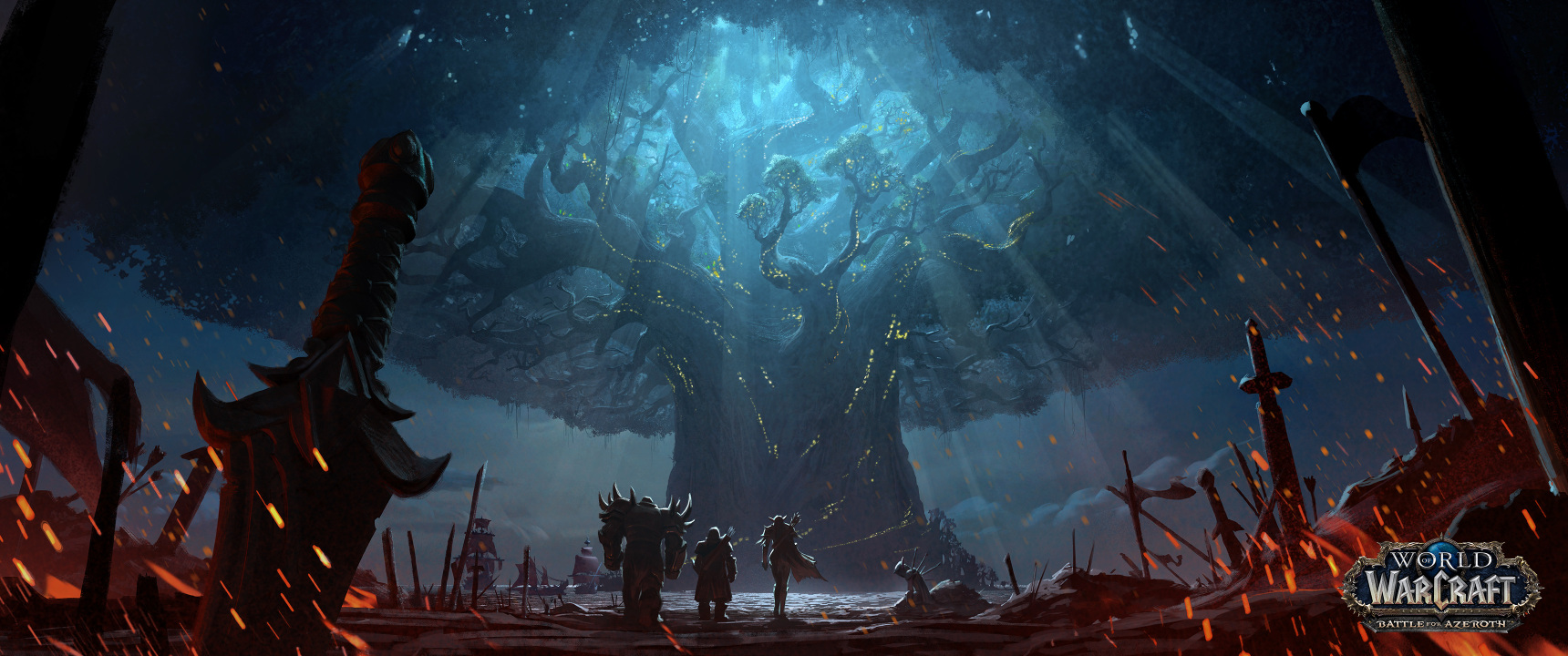游戏CG、魔兽、联盟、火、剑、树、魔兽世界、部落