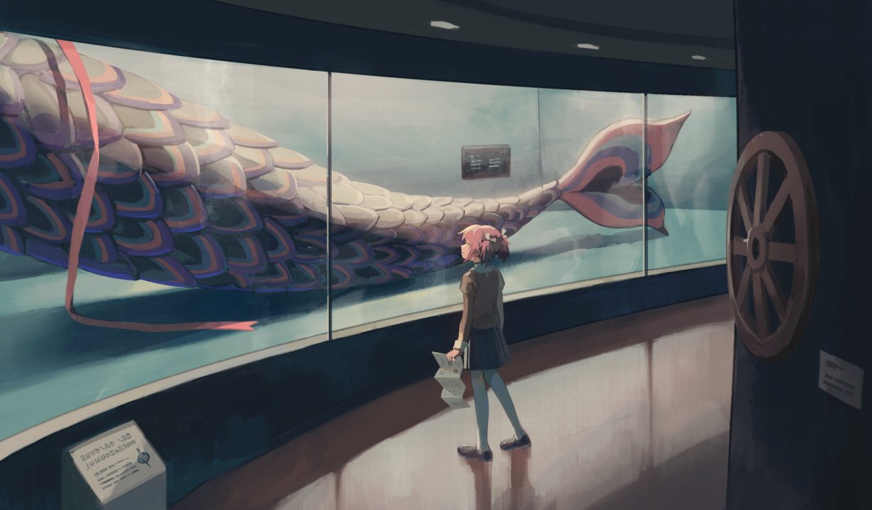 粉色头发、动漫、动漫女孩、水族馆、鱼