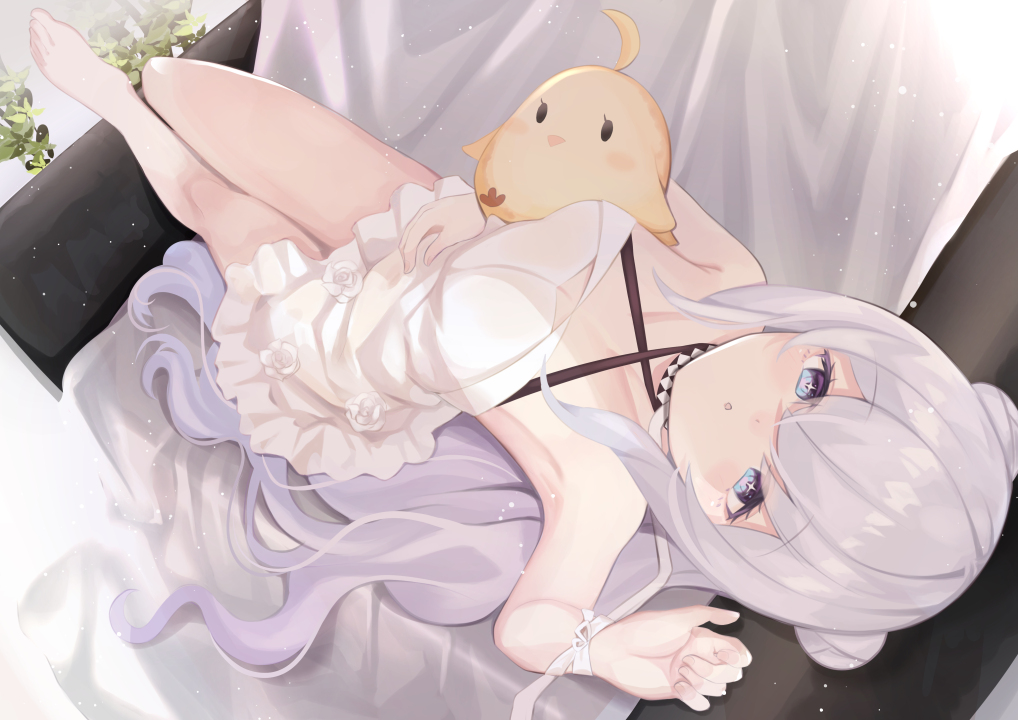 蓝眼睛、赤脚、长发、动漫、女孩、碧蓝航线、连衣裙、银发