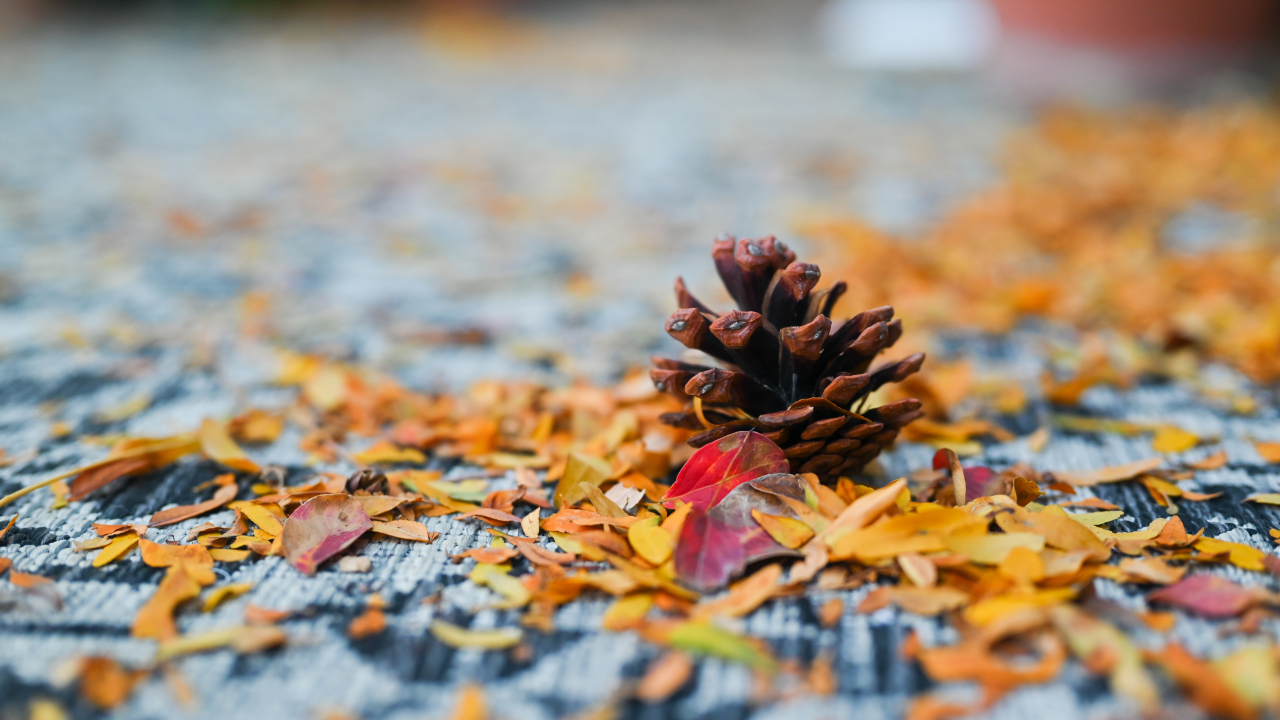 秋天的落叶与松果