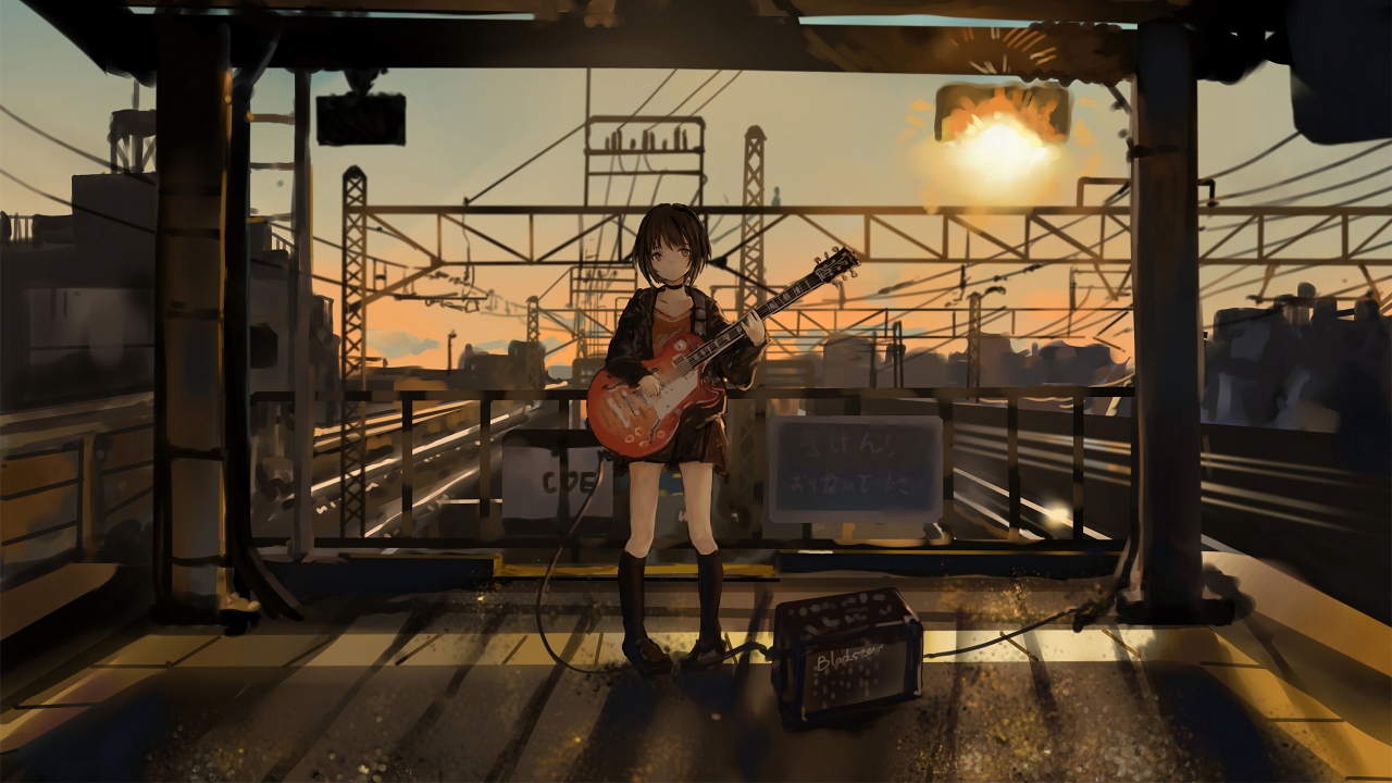 夕阳下的吉他少女