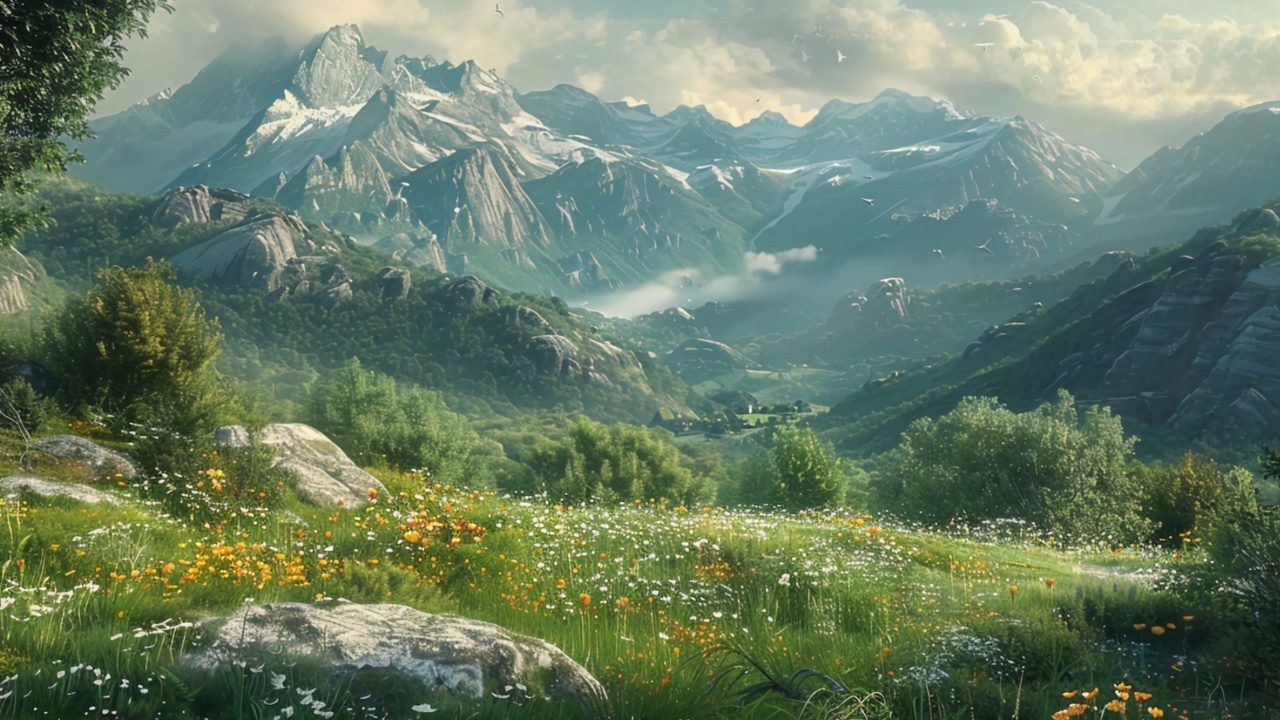 唯美、草地、数字艺术、艺术品