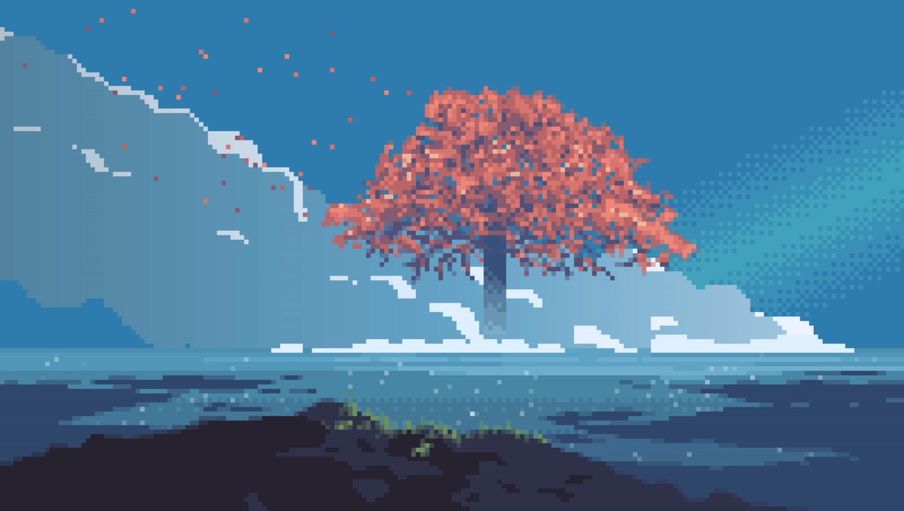 粉色、像素、可爱的、樱花